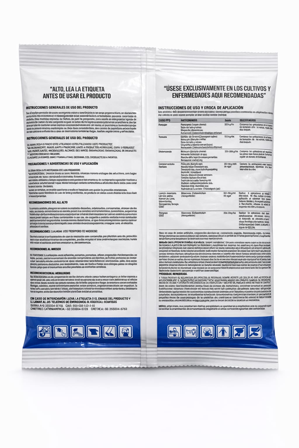 No comer, beber o fumar durante su manejo y aplicación. Utilice equipo de protección personal completo. No aplicar en horas de calor intenso ni cuando se pronostiquen lluvias. No aplicar en cultivos no indicados en esta etiqueta. No mezclar con productos de reacción alcalina. No reutilizar el envase vacío.